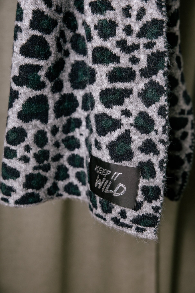 • Echarpe longue dans une maille douce, jacquard à motif léopard