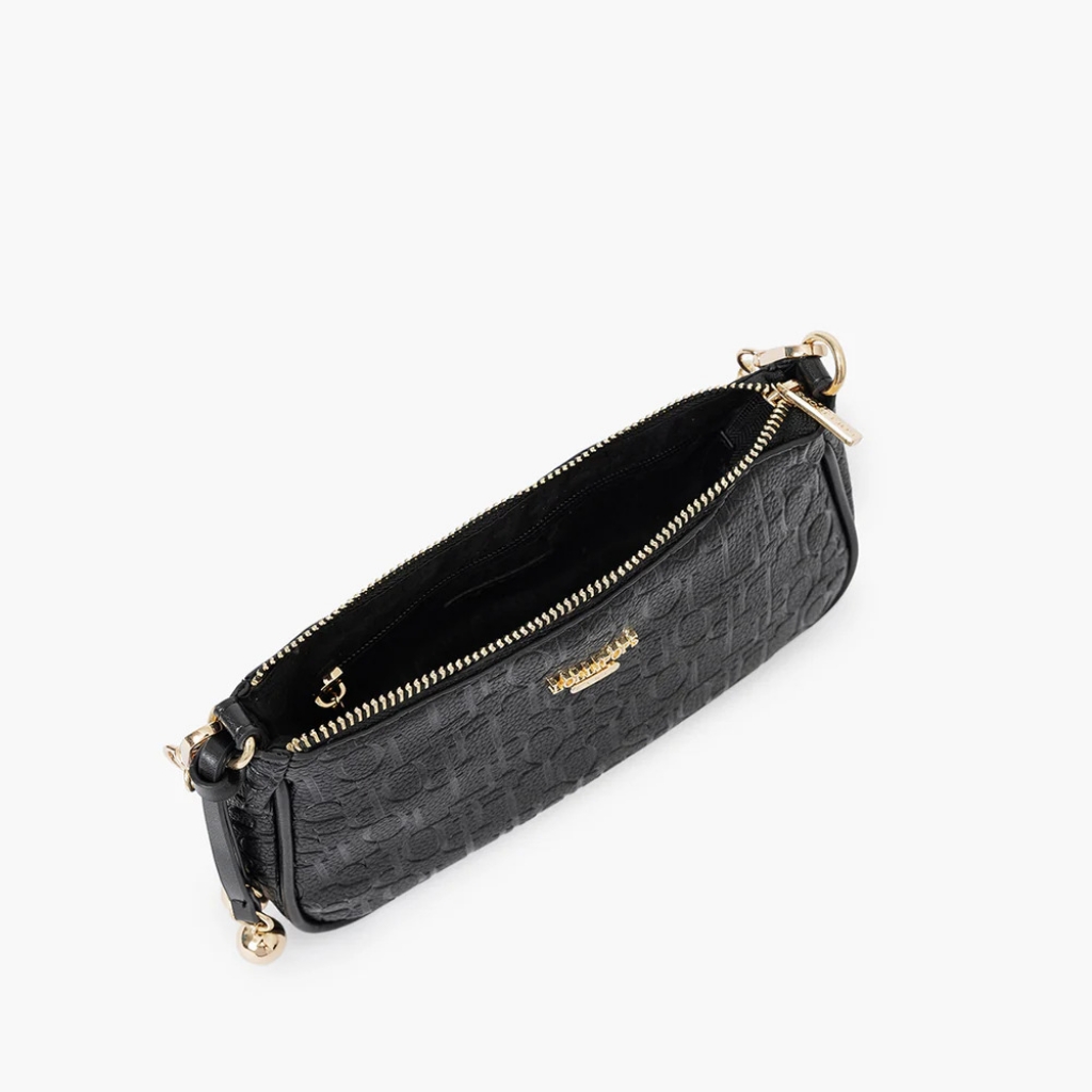 Sac bandoulière noir en simili cuir effet grainé avec monograme.