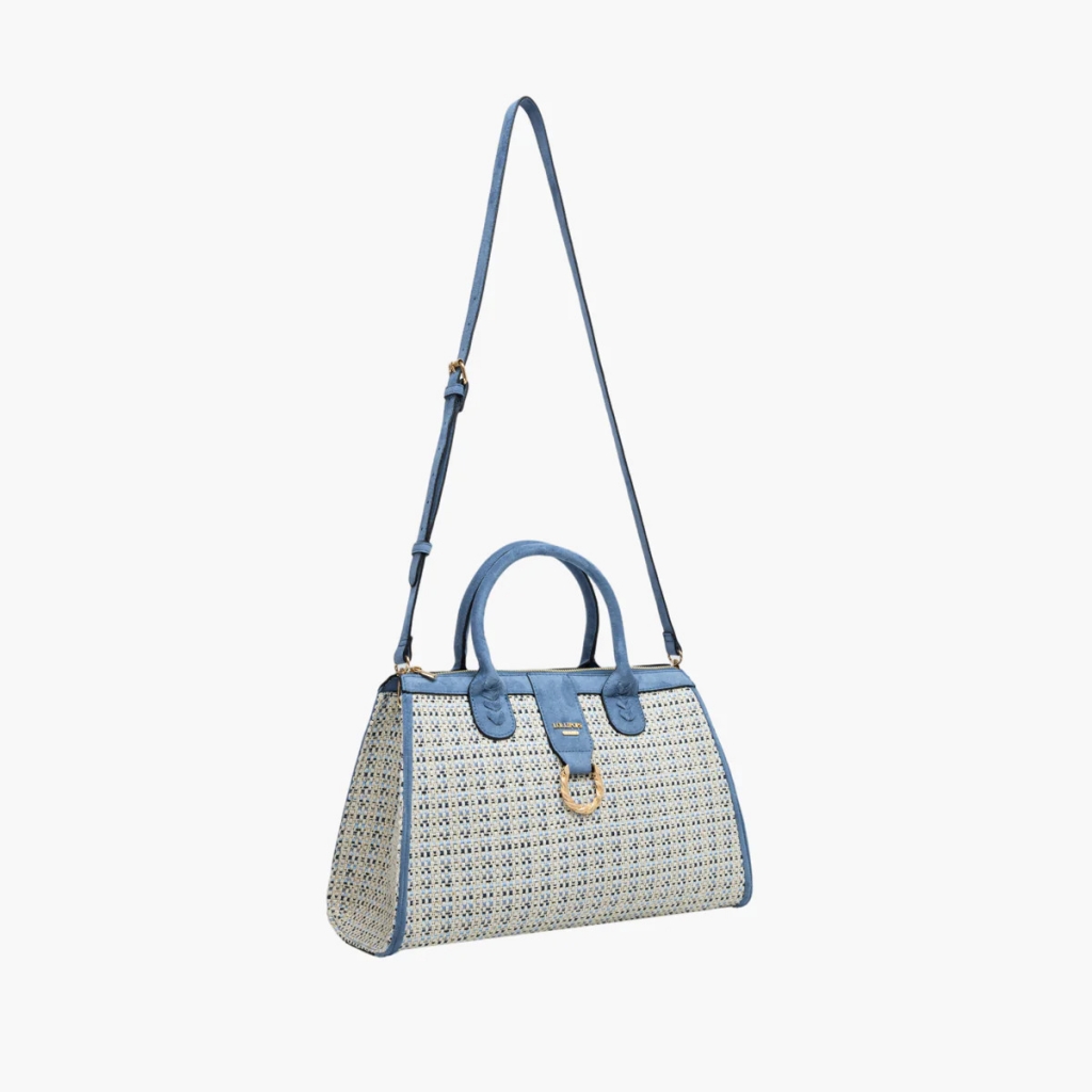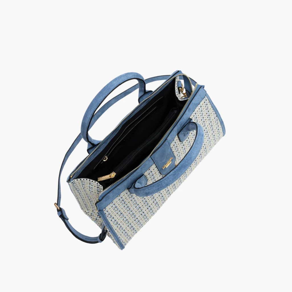 - Sac shopper bleu Shai en coton tressé et finition suède