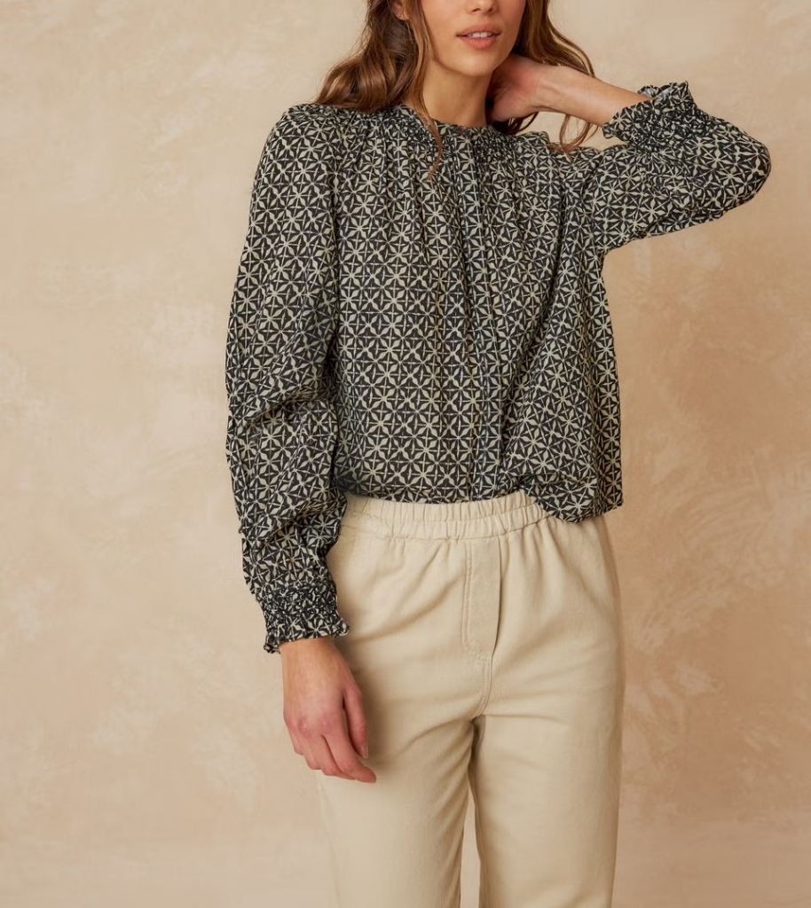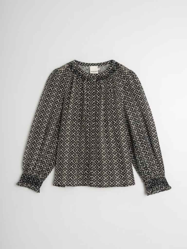 Nous adorons cette chemise car vous pouvez la porter avec les boutons sur le devant ou dans le dos. Elle a un col à volants et des détails en nid d’abeille. L'imprimé et la coupe carrée lui confèrent un look bohème, héritage des débuts d'INDI&COLD. La mousseline de soie 100 % coton biologique la rend légère et très confortable.