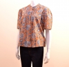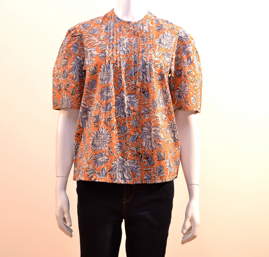 Imprimé floral pour cette blouse légère en pur coton. Elle comporte une encolure mao, des manches courtes sur des emmanchures droites agrémentées de fronces, un boutonnage central, quelques surpiqûres sur le buste, des fronces dos et des fentes de côté. Cette pièce présente une coupe loose. Elle est confectionnée sur un support imprimé proposant un print floral en all-over. Nous vous conseillons de lui associer le pantalon assorti 40855, pour une superbe silhouette pouvant s'approcher d'une combinaison.
