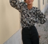 • Épaule encastrée avec manches bouffantes et poignets boutonnés • Fermeture centrale avec boutons ton sur ton • Empiècement avec fronces pour donner de l'ampleur à la chemise • Tissu léger et avec mouvement travaillé en dobby de viscose