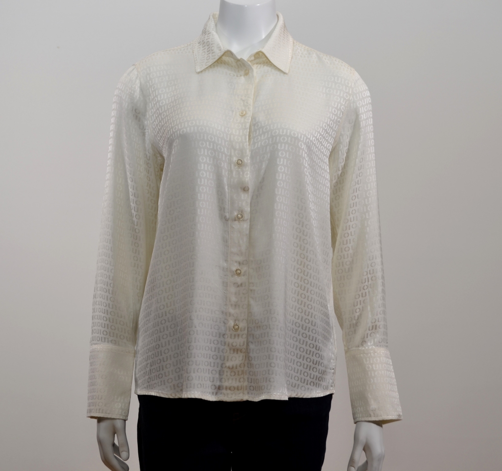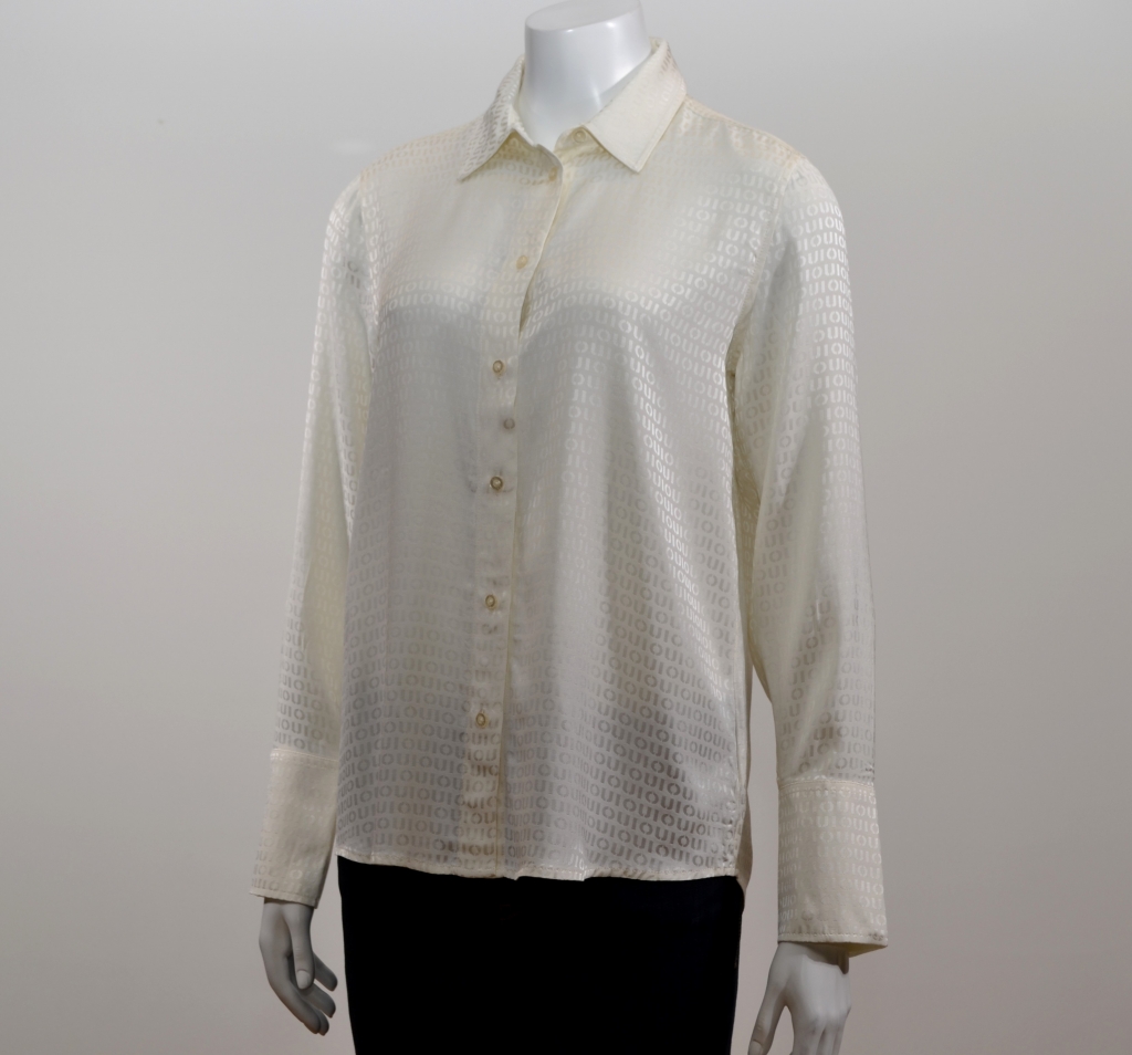 Très belle pièce en satin de viscose brillant avec le logo OUI discrètement tissé en jacquard.