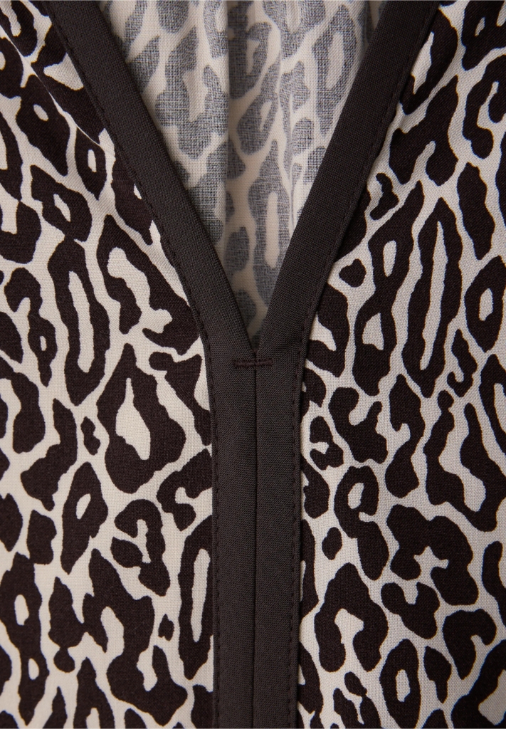 Cette chemise tunique léopard apporte un vent de fraîcheur dans votre garde-robe avec son imprimé animalier et ses détails unis en bande. Le col fendu et la coupe décontractée soulignent le style moderne. La viscose douce assure un confort de port léger et un tombé fluide.