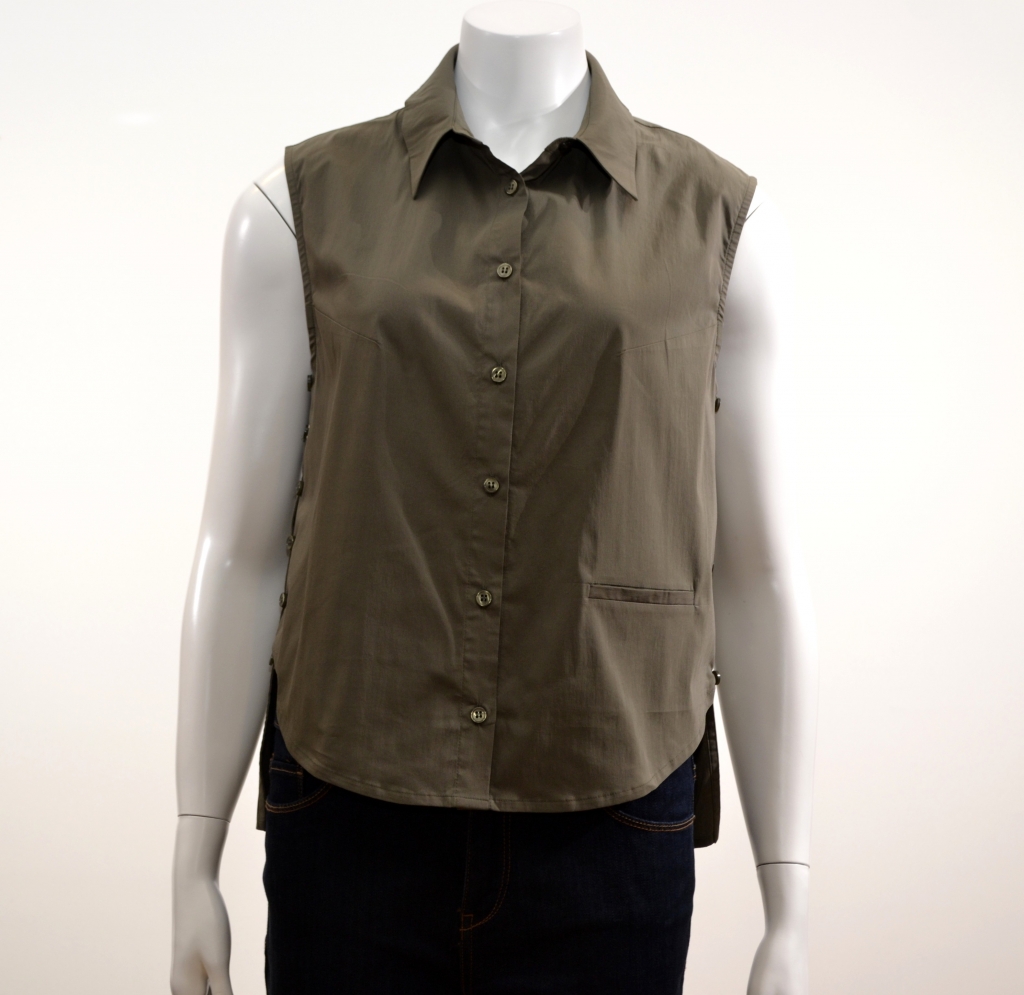 Joli top looké en coton très facile à porter avec boutonnage de côté sous lichettes. Ce top comporte un col chemise, de larges emmanchures, un boutonnage central, une poche basse trompe l'oeil, une base avant arrondie avec le panneau arrière descendu et droit. Ce modèle présente une forme droite. Il est confectionné sur un support coton/élasthanne.