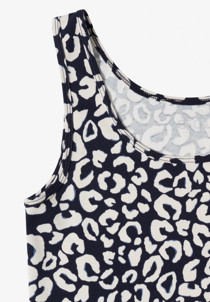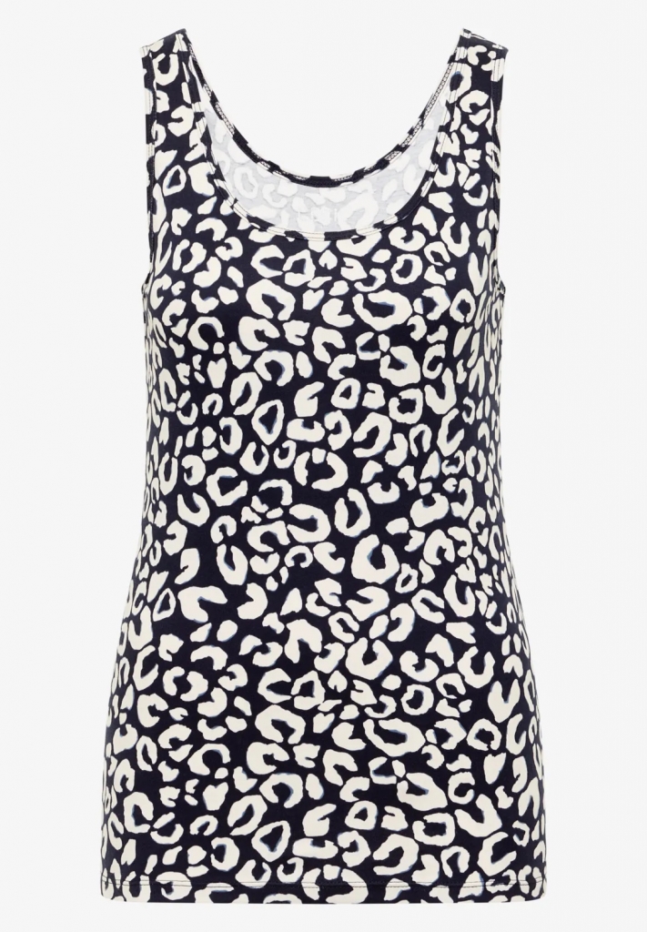 Débardeur à col rond et motif léopard.
