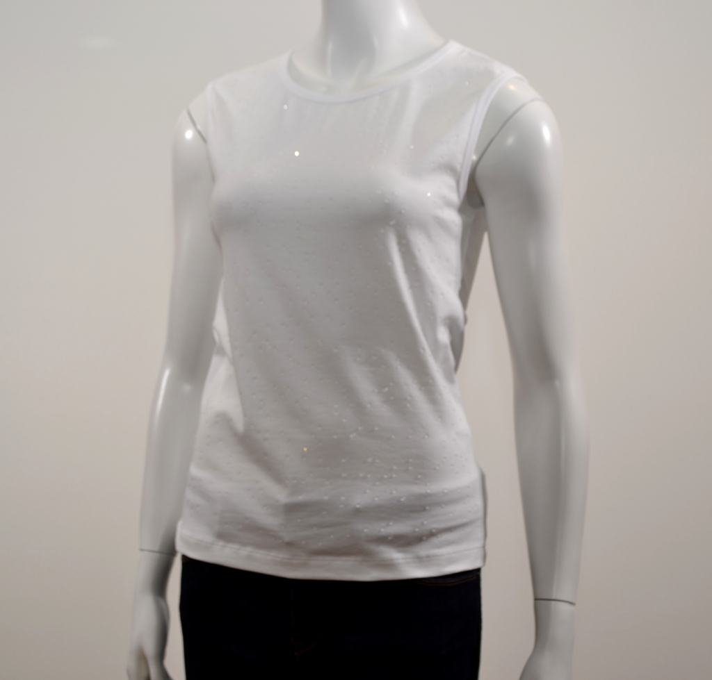 L'indispensable débardeur à avoir toujours à portée de main. Ce débardeur comporte une belle encolure ronde et de larges bretelles. Il présente une forme droite. Ce produit est confectionné sur un support coton/élasthanne très agréable à porter et affiche une multitudes de sequins sur sa partie avant.