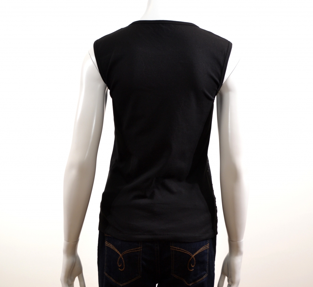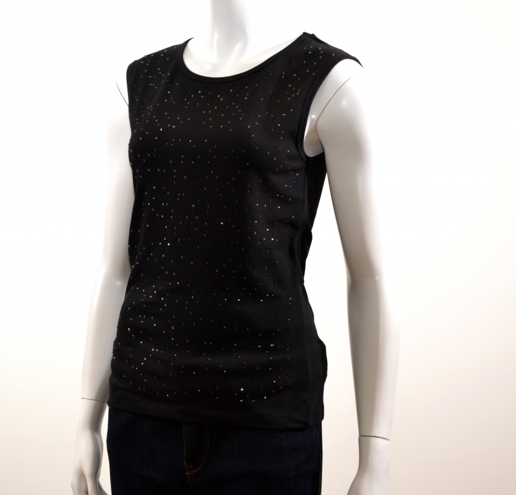 L'indispensable débardeur à avoir toujours à portée de main. Ce débardeur comporte une belle encolure ronde et de larges bretelles. Il présente une forme droite. Ce produit est confectionné sur un support coton/élasthanne très agréable à porter et affiche une multitudes de sequins sur sa partie avant.