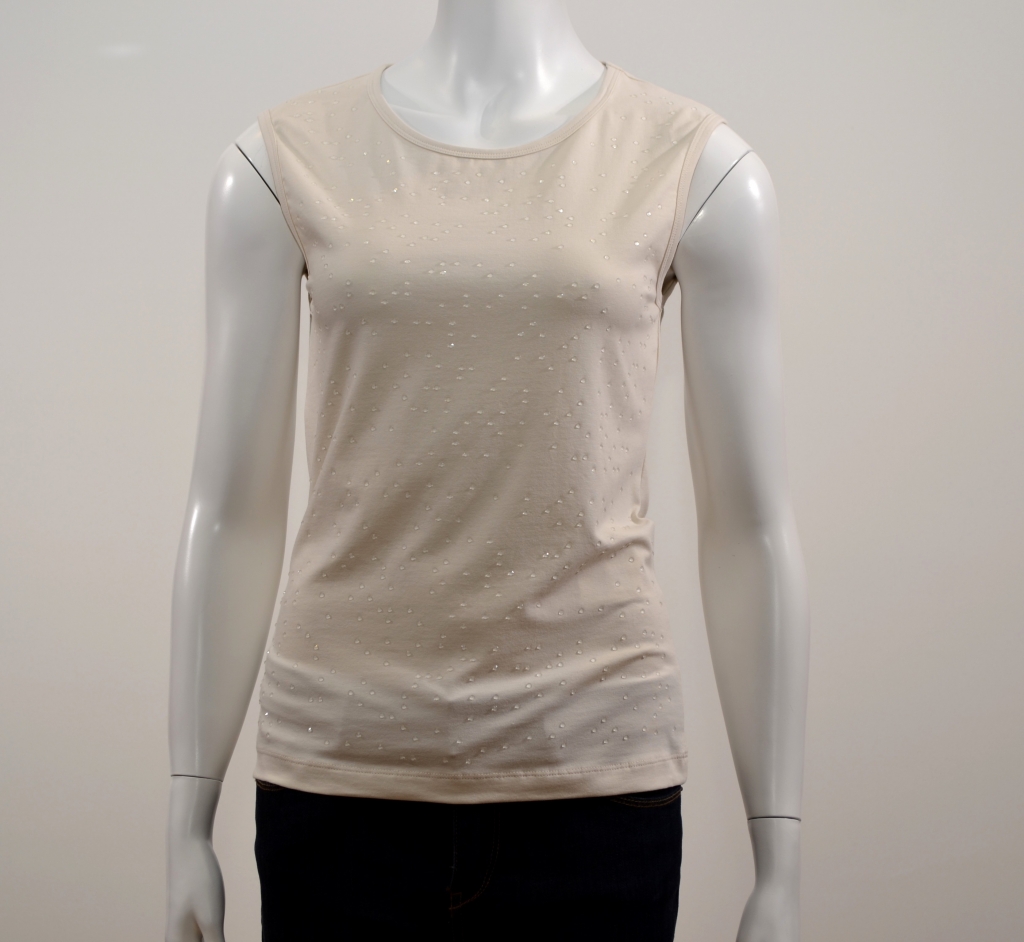 L'indispensable débardeur à avoir toujours à portée de main. Ce débardeur comporte une belle encolure ronde et de larges bretelles. Il présente une forme droite. Ce produit est confectionné sur un support coton/élasthanne très agréable à porter et affiche une multitudes de sequins sur sa partie avant.