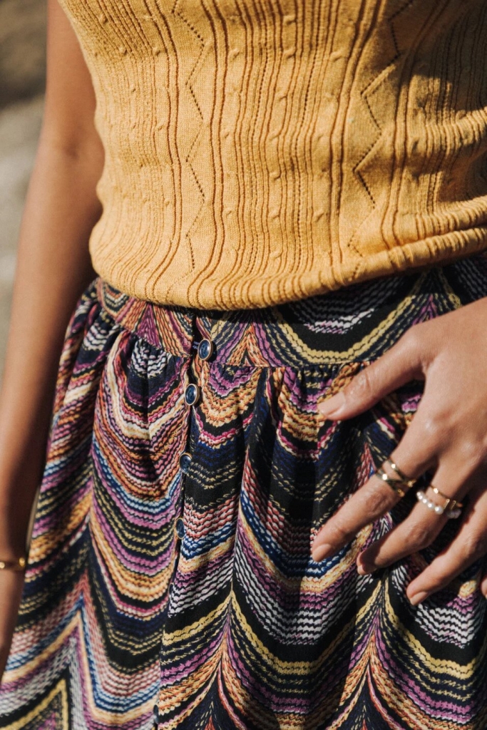 E VIVA MEXICO : Jellis Mexicana arbore un imprimé géométrique chaleureux et coloré, inspiré des motifs mexicains. On s'imagine siroter un Tequila Sunrise en la portant. 4