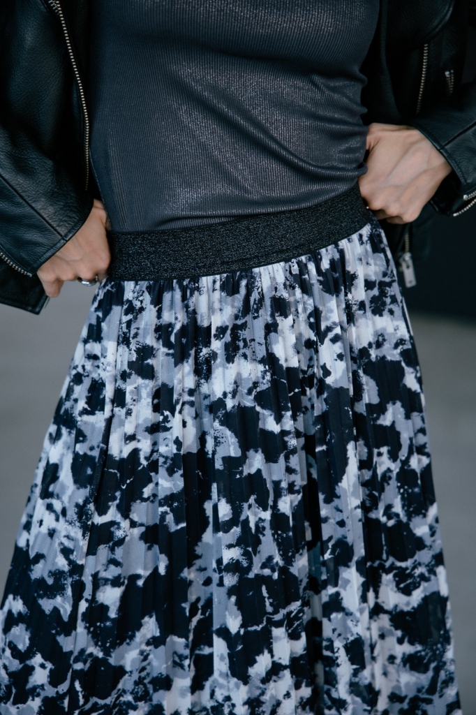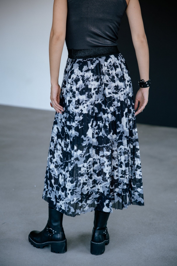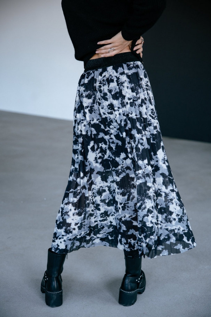 • Dans une matière résille fluide et douce entièrement imprimée d'un motif style "camouflage" abstrait