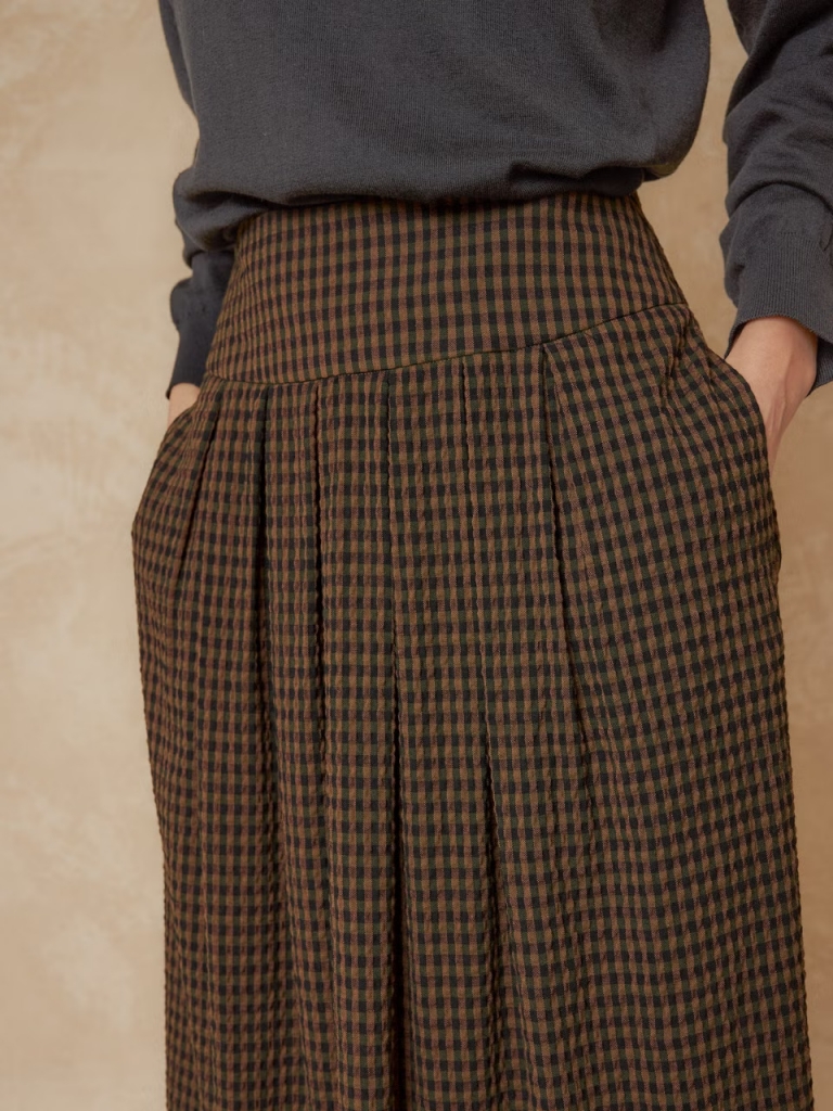 Cette jupe midi à carreaux mini contient de la viscose, ce qui lui confère une texture et un drapé idéaux pour celles qui souhaitent allier style et confort. Sa taille mi-haute avec fermeture éclair s'adapte parfaitement à votre silhouette, tandis que les fentes latérales lui donnent une touche de fraîcheur et que les détails de fronces ajoutent de volume.