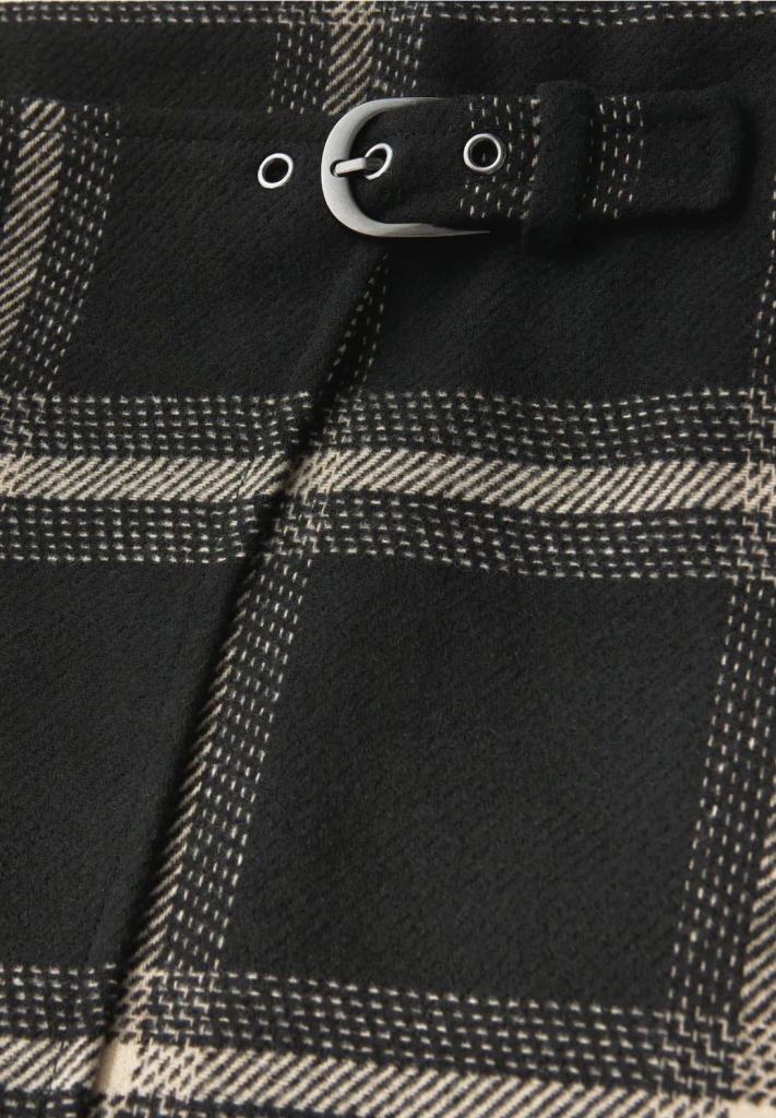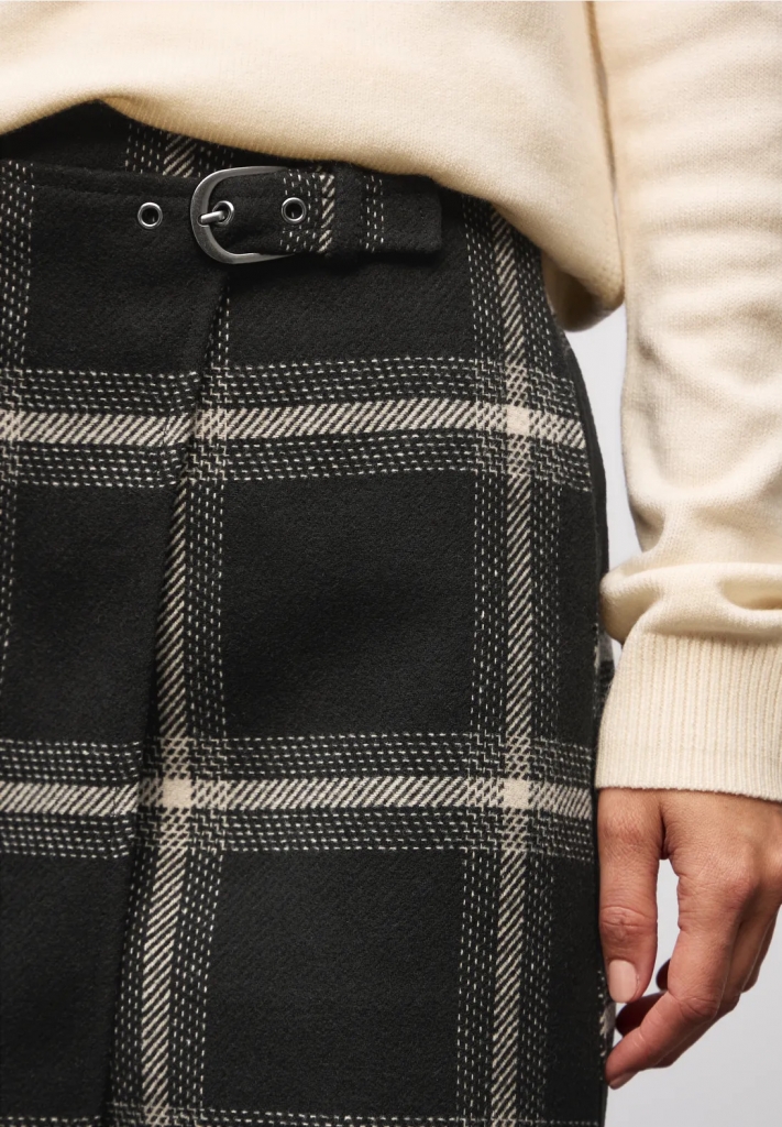 Cette jupe à carreaux se distingue par un détail moderne de cache-cœur avec une boucle décorative. Le motif à carreaux classique confère à la coupe au genou une touche de style, tandis que la fermeture éclair à l'arrière et les poches latérales assurent un confort pratique. Une touche de mode pour les looks d'automne.
