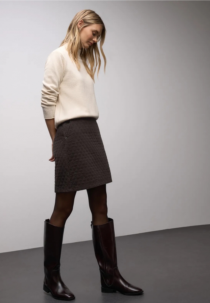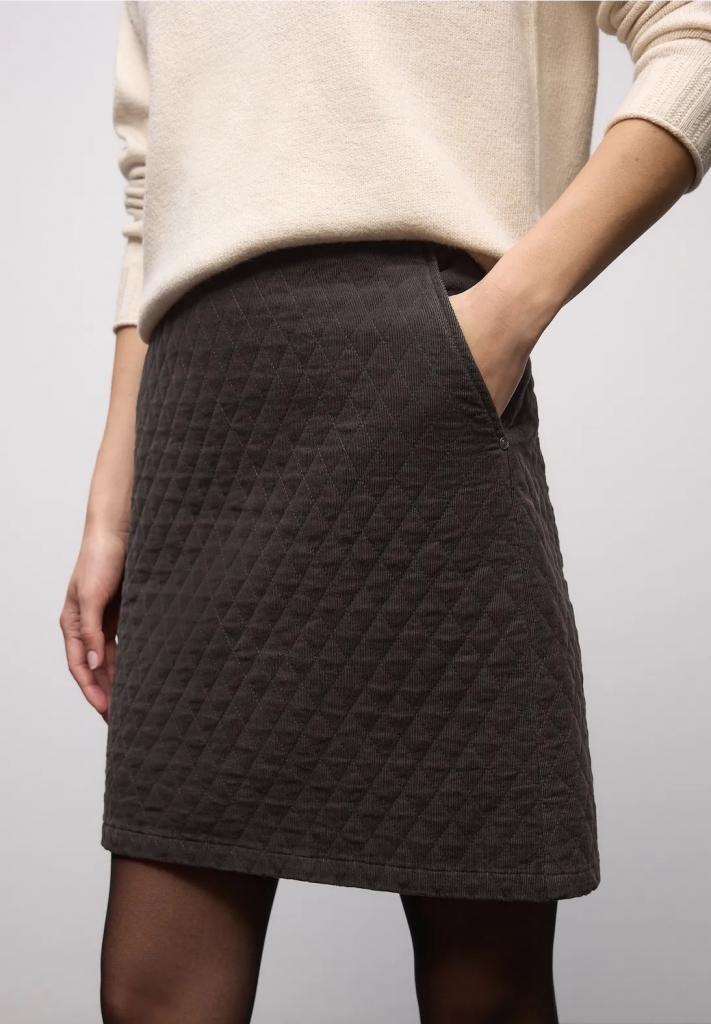 Cette jupe en velours côtelé longueur genou dasn la coupe MAJA séduit par son élégant motif piqué et sa silhouette épurée. Le pur coton offre un confort agréable et un aspect naturel. Une jupe à la mode - à combiner de manière polyvalente du chic au casual.