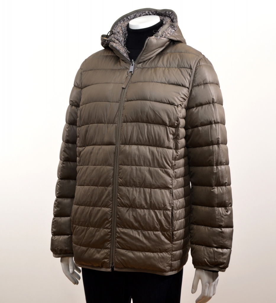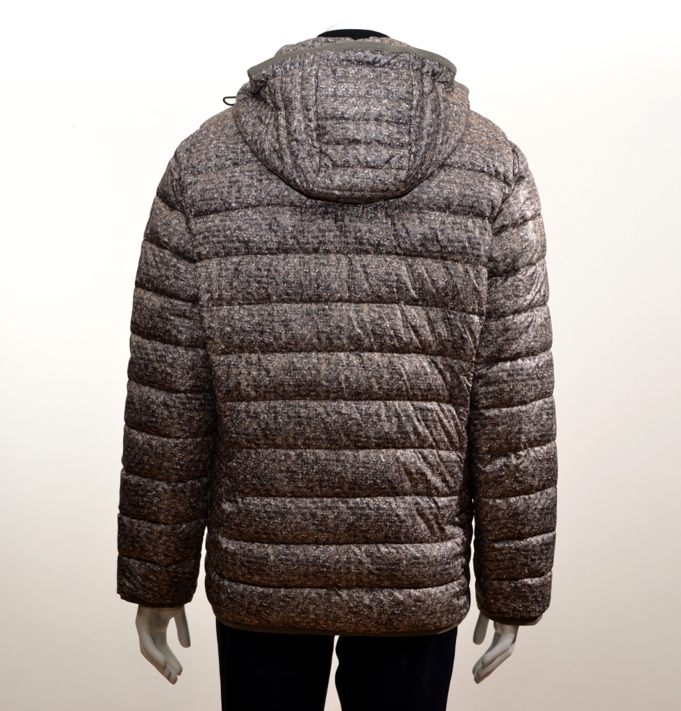 Belle pièce reversible légère et confortable proposée sur un imprimé minimaliste dans les tons de brun. Cette doudoune comporte une encolure montante complétée par une capuche amovible avec bordure coulissable par cordon de serrage à moduler selon votre souhait, des manches longues terminées par un poignet bracelet, une fermeture centrale à glissière et deux poches fendues zippées avec piping et tirette textile. Cette pièce présente une forme régular. Elle est confectionnée sur un support matelassé qui vous apportera confort et bien-être tout au long de cette nouvelle saison.