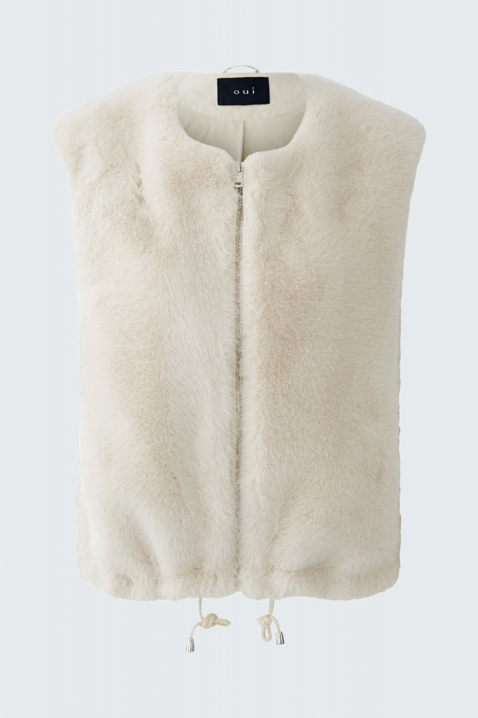 Superbe veste en fausse fourrure, aspect vison, idéal pour compléter vos pulls ou robes. Aspect décontracté avec deux poches fendues.