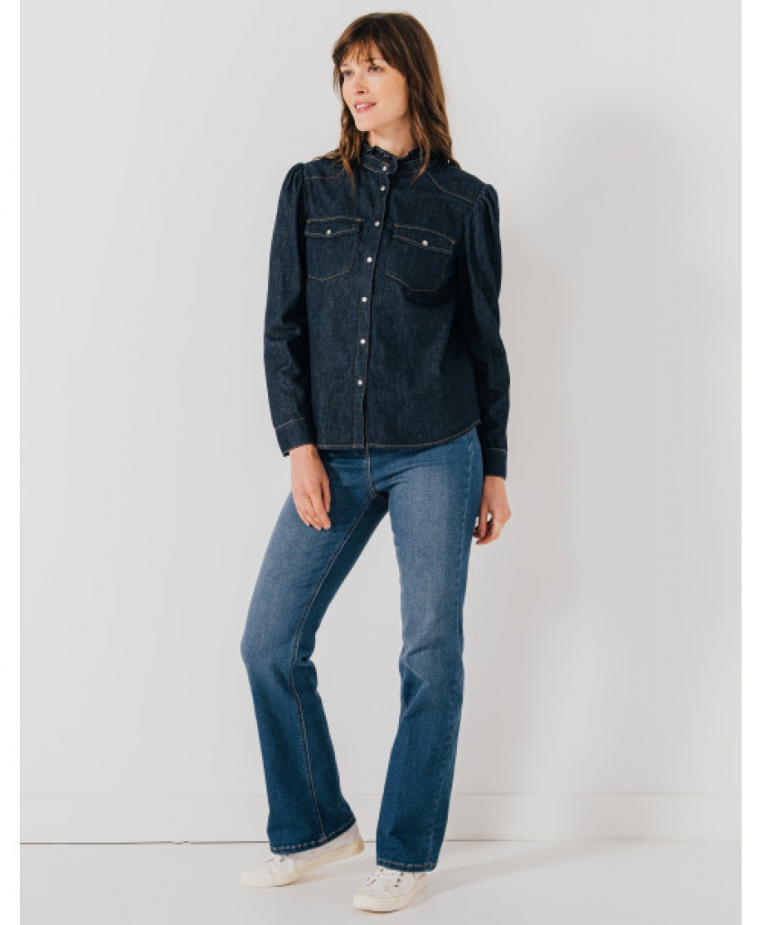 Un jean femme fortement influencé par les années 70. Avec sa forme évasée en bas de jambe, ce jean Bootcut assume pleinement son allure vintage. Confectionné dans une matière extensible, il vous assure un maximum de confort. Un jean flare à porter avec un chemisier imprimé.