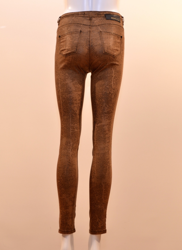 Un imprimé animalier bien dans la tendance du moment et proposé sur un superbe coloris. Ce jean comporte une ceinture sous passants, deux poches western dont une complétée par une poche ticket, une fermeture centrale zippée complétée par un bouton métal logoté et deux poches plaquées arrière. Il présente une taille haute avec une coupe skinny. Ce produit est confectionné sur un support imprimé ultra souple et extensible hyper agréable à porter.