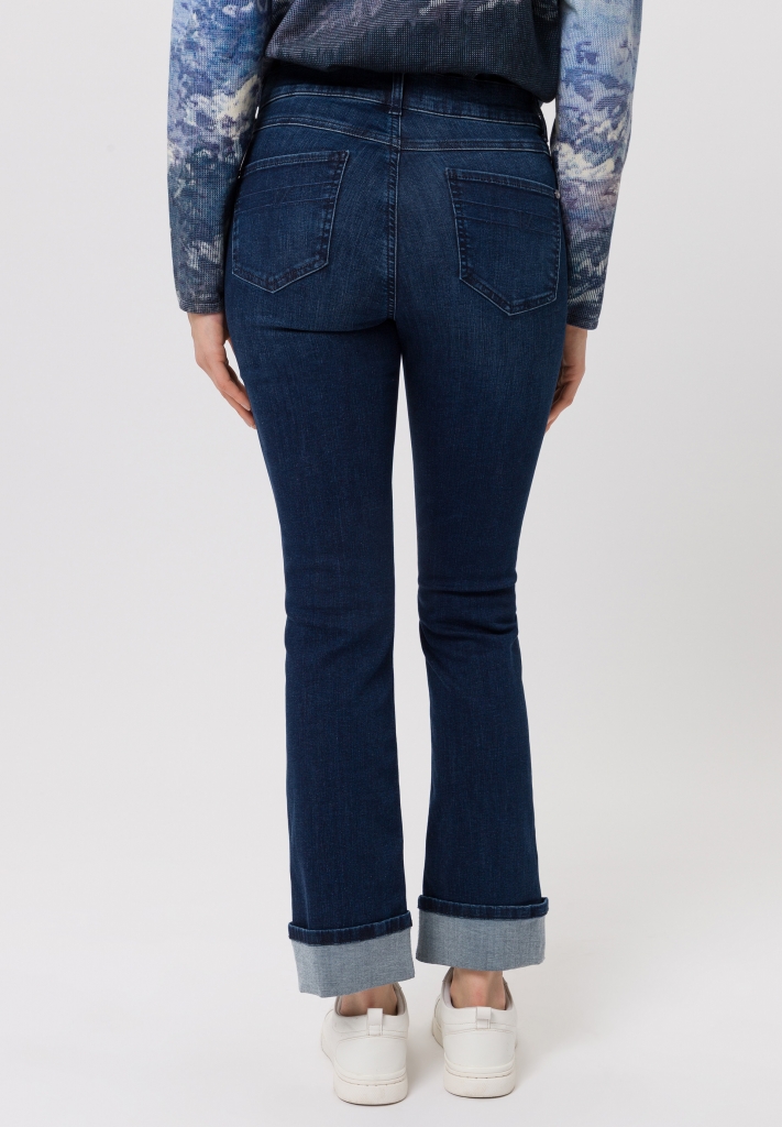 Jean évasé tendance avec ourlet retroussé décontracté : un look polyvalent pour des tenues décontractées.