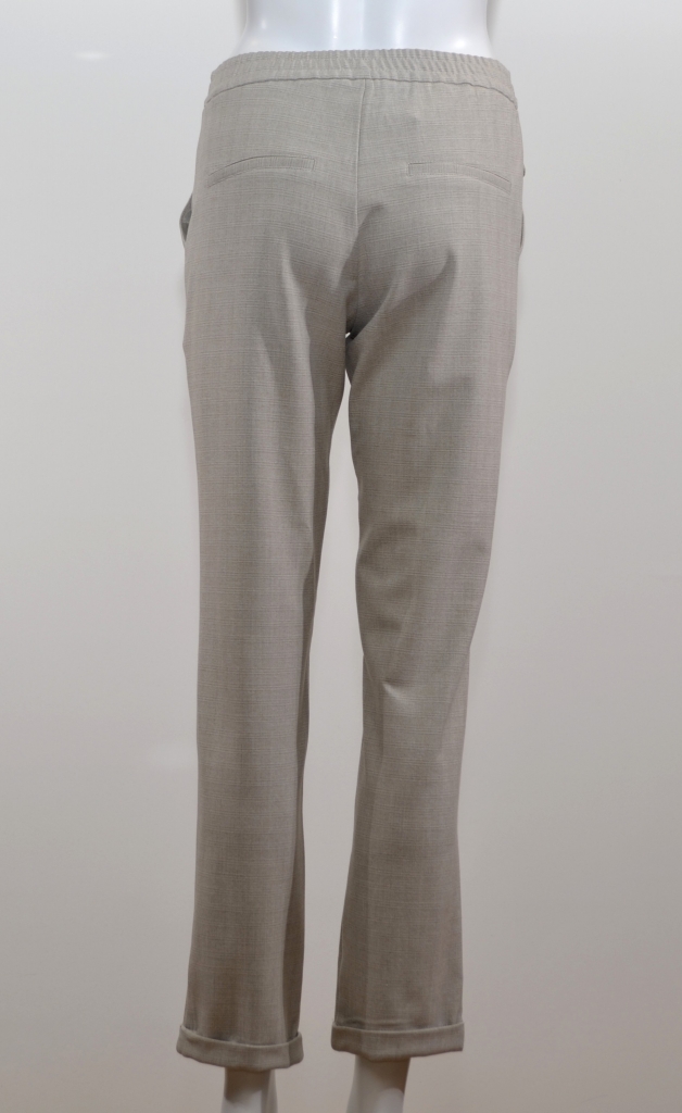 Laissez vous tenter par ce joli produit proposé sur un coloris craie. Ce jogpant 7/8 comporte une large ceinture, élastiquée sur sa partie arrière, complétée par un cordon sous tunnel à coulisser, selon votre souhait, une fermeture centrale à glissière dissimulée sous une patte avec agrafe, deux poches italiennes, prolongées par un rabat en garniture et deux poches fendues dos passepoilées placées en trompe l'oeil. Il présente une coupe slim sur une forme emboîtante. Ce produit est confectionné sur un support très agréable à porter avec un très léger carreau dans sa trâme. Nous vous conseillons de lui associer la veste EGV402 assortie pour une silhouette parfaite.