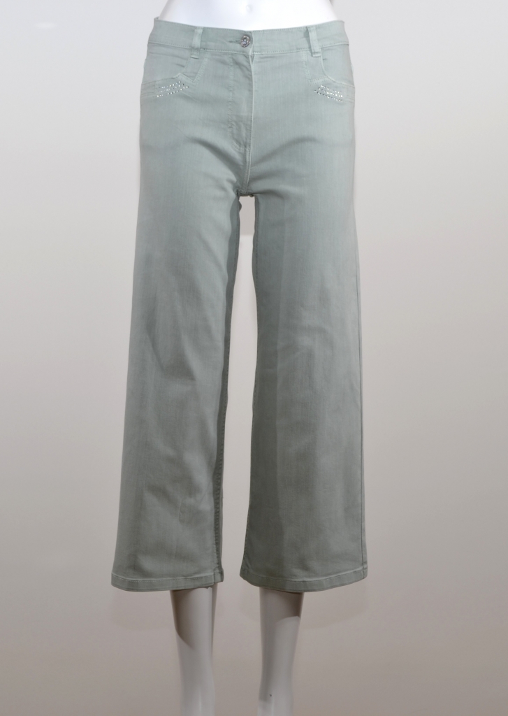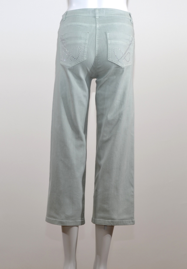 Ce jean court est élégant et moderne. Sa taille mi-haute, sa coupe droite et sa longueur raccourcie lui confèrent un style contemporain. Il se marie aussi bien avec des talons qu'avec des chaussures plates. Ce jean comporte une ceinture sous passants, une fermeture centrale à glissière complétée par un bouton métal, deux poches western soulignées par une ribambelle de brillants et deux poches plaquées dos réhaussées par une garniture en brillants. Ce modèle 7/8 présente une coupe large sur une taille mi/haute. Il est confectionné sur un support majoritaire en coton et nous vous conseillons de lui associer le blouson assorti 4722/1832 pour une parfaite silhouette.