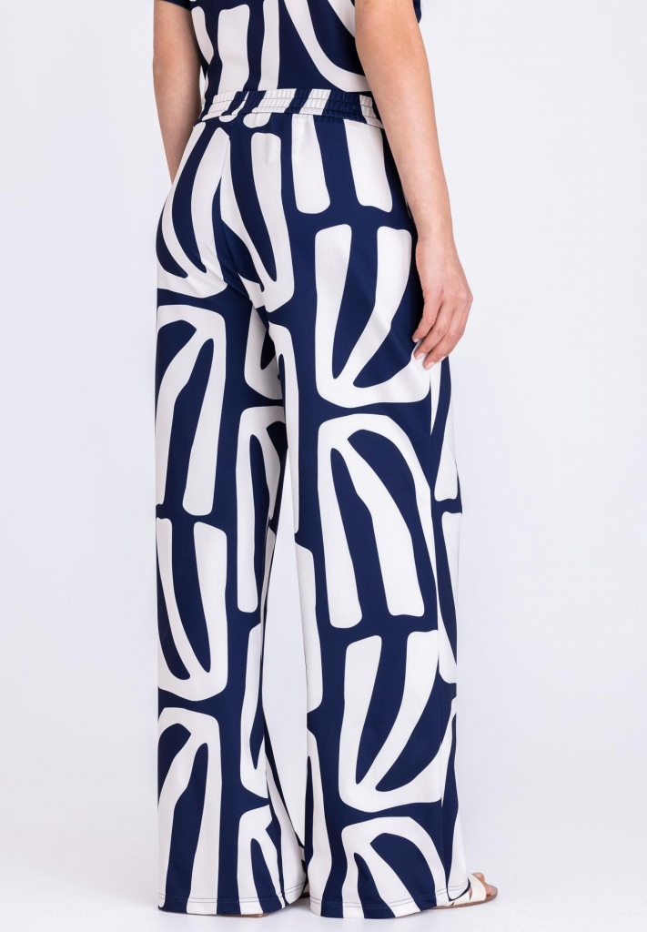 Pantalon à coupe large avec un motif intégral saisissant et une taille élastiquée.