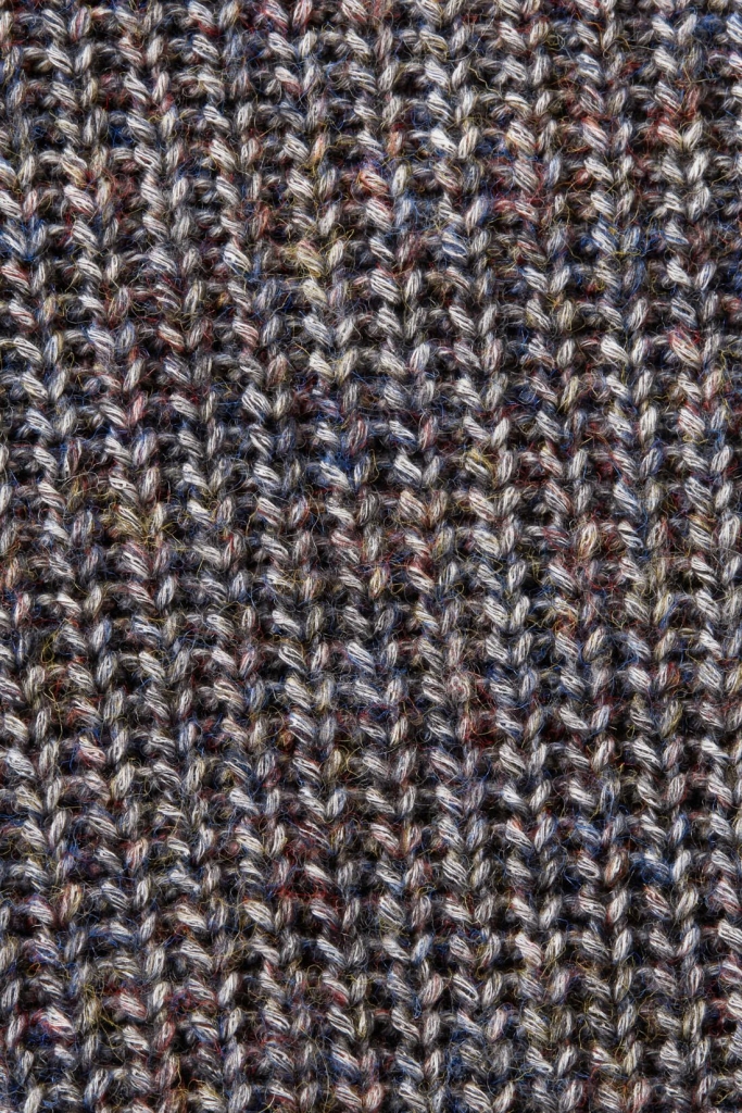 Confectionné dans une maille côtelée multicolore, ce cardigan arbore une profonde encolure en V et une fermeture à deux boutons.