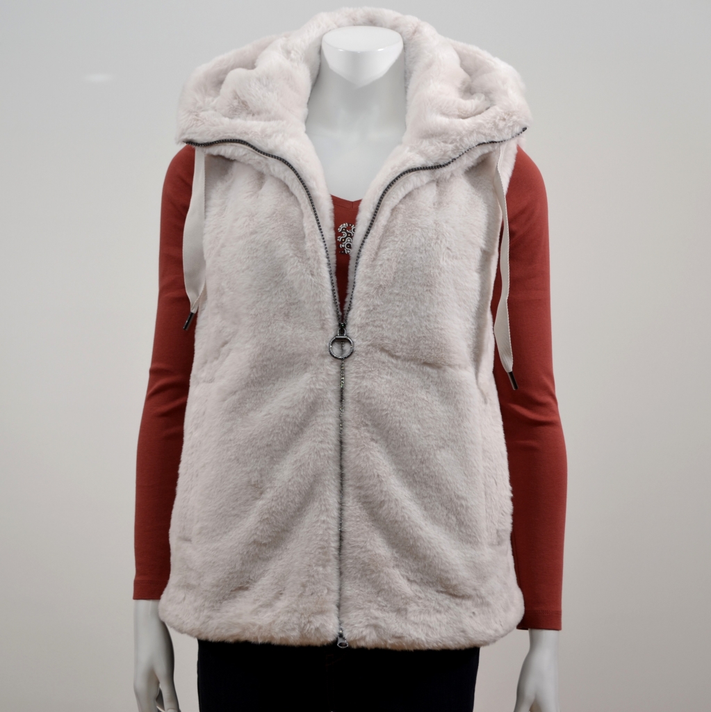 Superbe produit ultra moelleux que vous ne quitterez plus une fois porté. Ce gilet sans manche comporte une encolure montante complétée par une capuche attenante avec la bordure coulissable selon votre souhait par un cordon sous tunnel, de larges emmanchures, une fermeture centrale à glissière à double curseur avec tirette logotypée, deux poches basses fendues et une base droite. Ce modèle présente une coupe droite. Il est confectionné sur un support en fausse fourrure qui vous apportera confort et bien-être tout au long de cette nouvelle saison estivale.