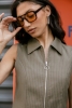 • Matière légèrement stretch et brillante, kaki à fines rayures roses