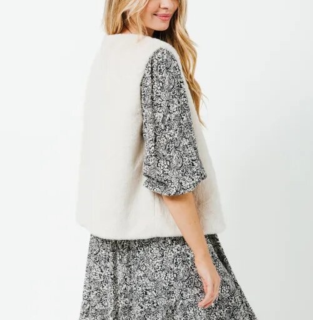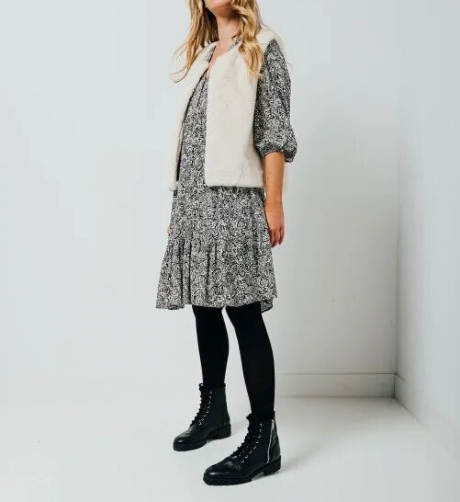 Avec cette superbe veste sans manches JAVA, vous aurez hâte de le porter dès le début de saison !. On l'aime pour sa matière fausse fourrure. On la porte avec un pantalon flare et une blouse imprimée. Elle sera votre meilleure alliée dès les premiers froids !