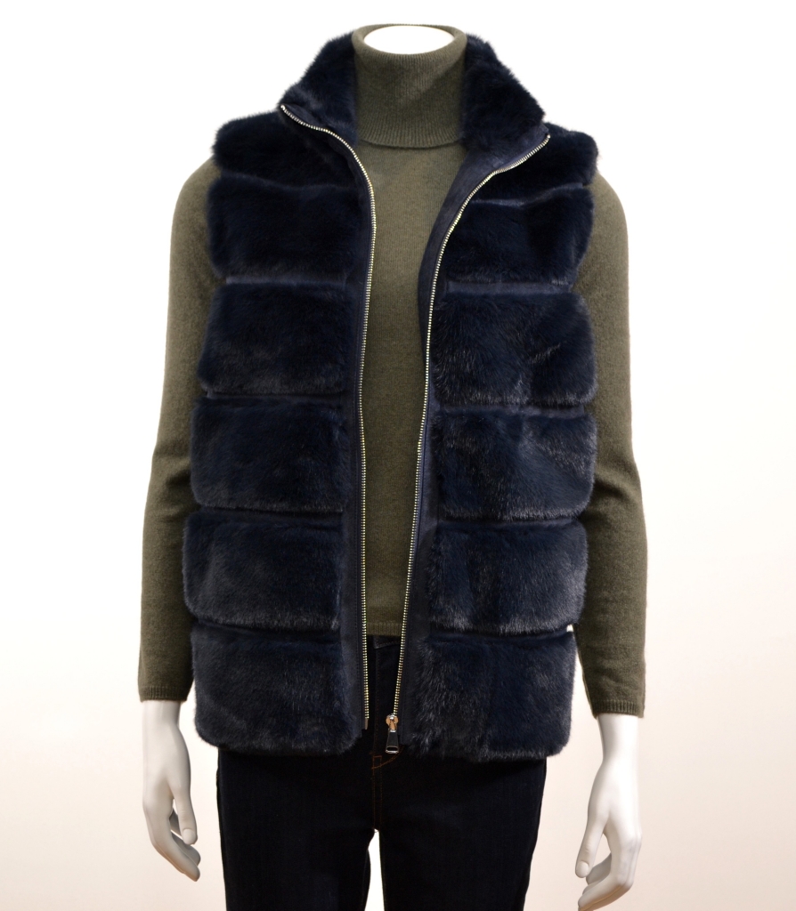 Superbe pièce qualitative en fausse fourrure à larges bandes que vous ne quitterez plus une fois porté. Ce modèle comporte une encolure montante, de larges emmanchures, une fermeture centrale à glissière et deux poches basses fendues. Ce produit présente une forme droite. Il est confectionné sur un fourrure en fausse fourrure avec des belles bordures intérieures en peau de porc.