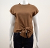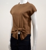 Joli modèle à porter seul ou en superposition. Ce pull sans manche comporte une encolure montante, de larges emmanchures et une finition originale à la base avec deux bandes à croiser formant ainsi un noeud. Ce modèle présente une forme droite. Il est confectionné sur un support léger en maille très agréable à porter.