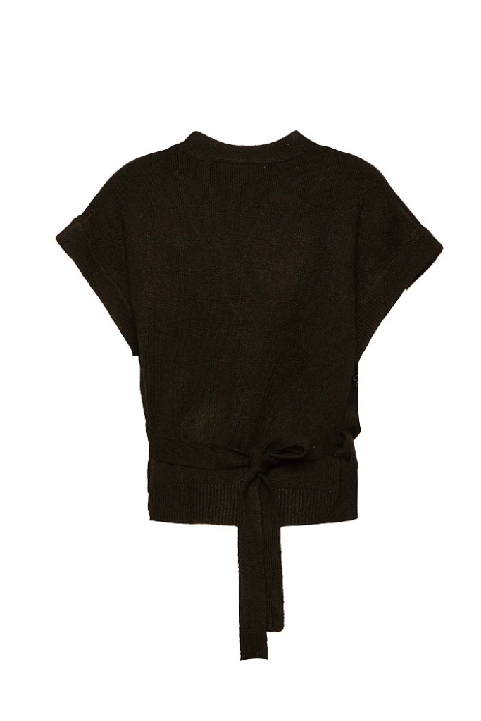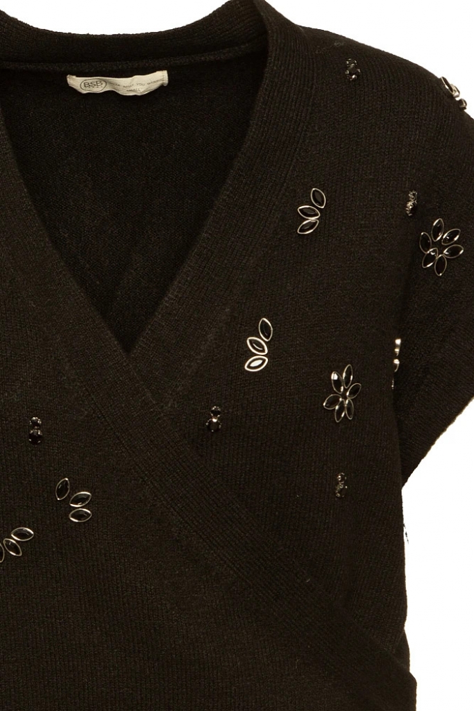 Pull à manches courtes, cache-cœur, fermeture à nouer dans le dos, décolleté en V, avec strass appliqués, coupe régulière, texture douce.