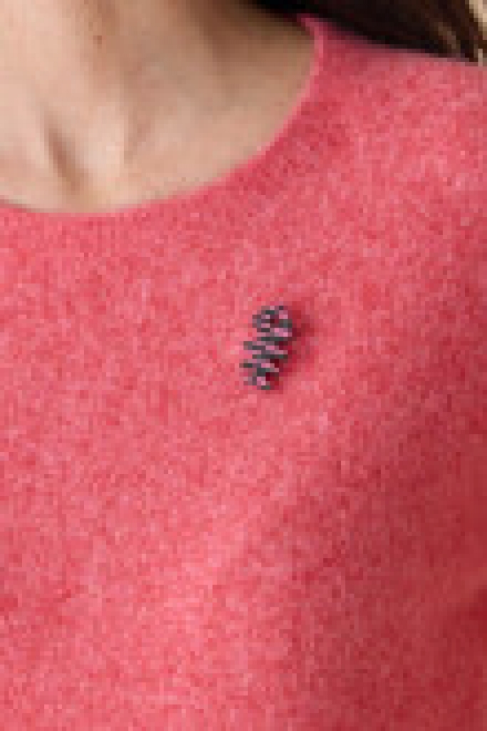 Pull uni en jersey maille doudou col rond manches tombantes bouffantes broche rayée MATELOT.