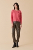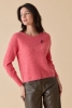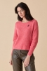 Pull uni en jersey maille "doudou", col rond, manches tombantes bouffantes, grand bord côte, broche rayée "MATELOT".