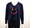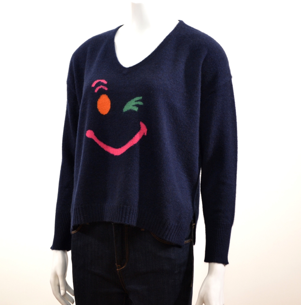 On craque volontiers pour ce joli modèle loose visuel affichant un motif "SMILEY" coloré. Ce pull comporte une encolure flatteuse en V, des manches longues terminées par un poignet côtelé sur des emmanchures arrondies et une base droite avec fentes de côté sur une large bande côtelée vous assurant ainsi une parfaite tenue. Ce pull présente une forme ample. Il est confectionné sur un support en pur cachemire.