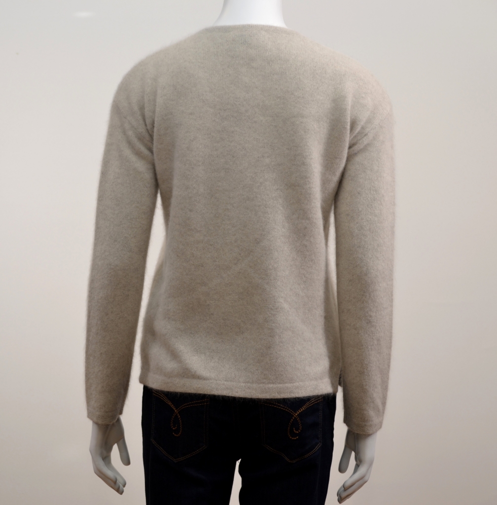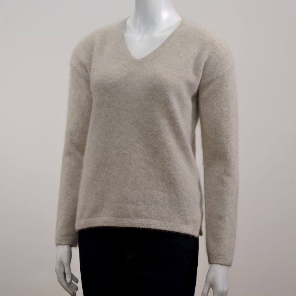 Une superbe pièce ULTRA confortable mixant raton laveur, angora et laine. Ce pull très qualitatif comporte une encolure flatteuse en V soulignée par une garniture côtelée, des manches longues sur des emmanchures droites et des fentes de côté à la base. Confectionné dans une belle maille douce, ce pull présente une forme droite. Vous l'associerez sasn aucun doute aux différents pions de votre dressing en raison de son coloris neutre.