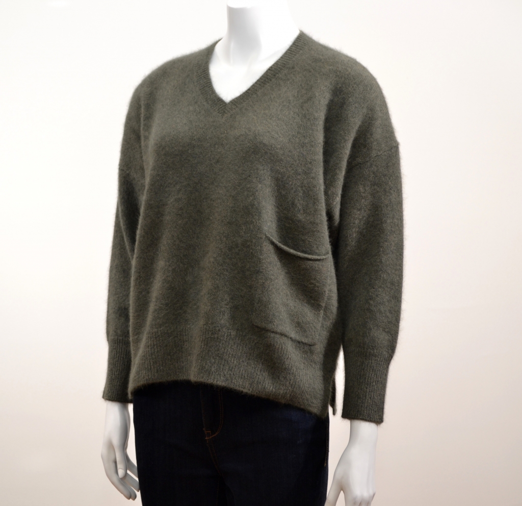Une superbe pièce originale et ULTRA confortable mixant raton laveur, angora et laine. Ce pull très qualitatif, de forme loose comporte une encolure flatteuse en V soulignée par une garniture côtelée, des manches longues avec un large poignet à côtes sur des emmanchures droites et des fentes de côté dans sa partie basse sur une finition similaire vous assurant un parfait maintien. Confectionné dans une belle maille douce, ce produit abore dans sa partie basse avant une poche plaquée avec sa bordure haute roulottée.