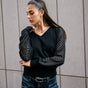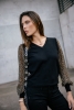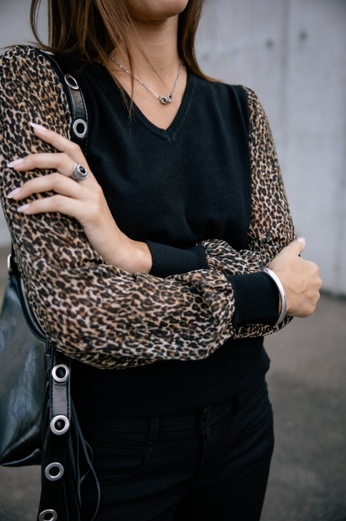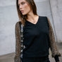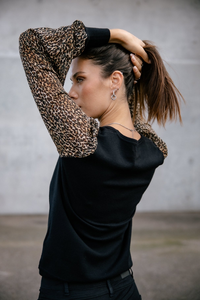 • Manches bouffantes dans un voile tissé légèrement transparent et entièrement imprimées à motifs léopard