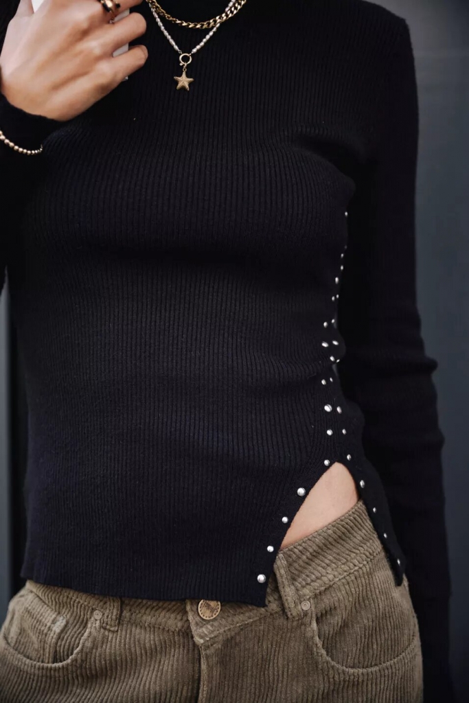 Pull avec col montant et fentes.