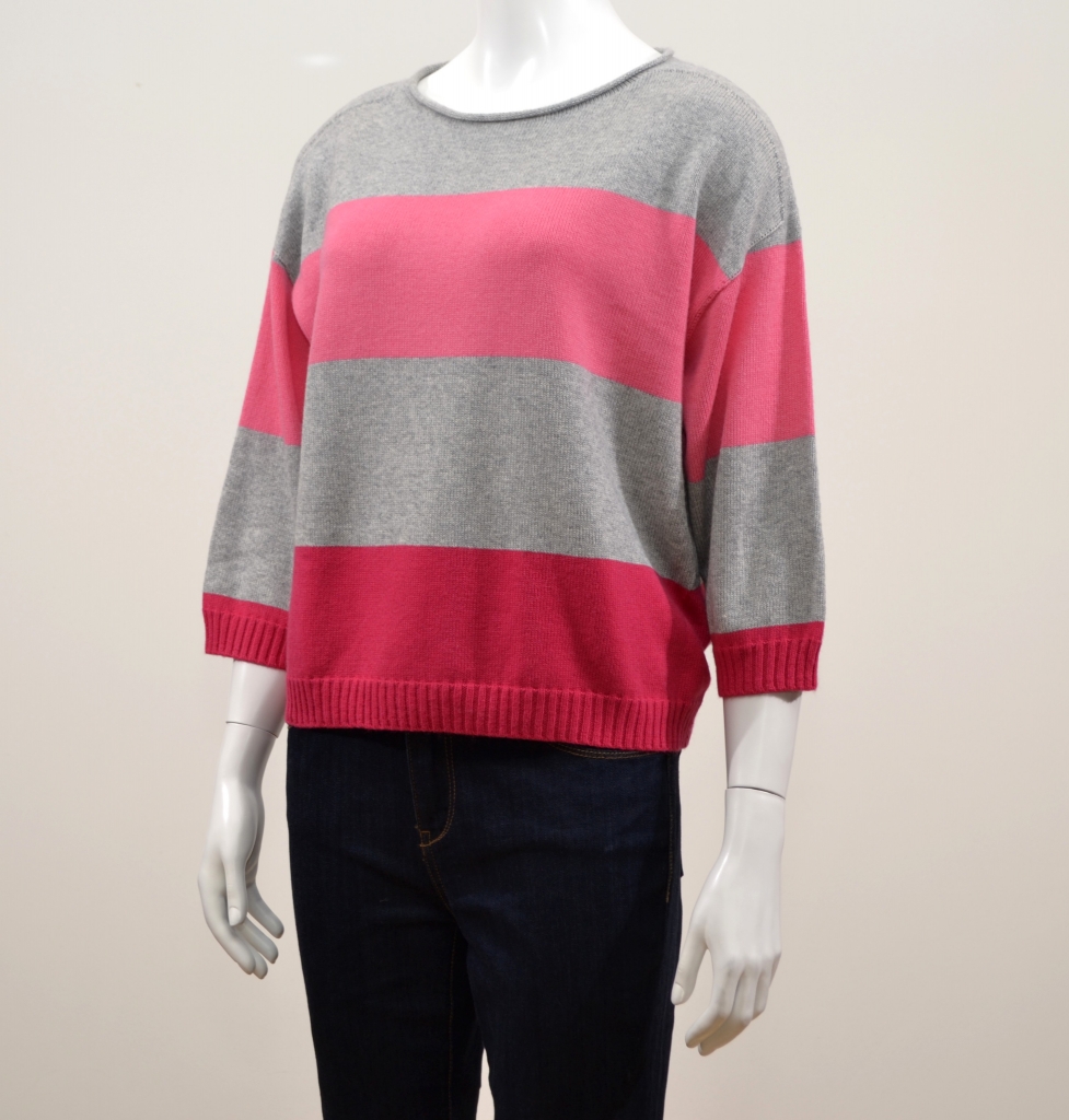 - Poignets tricotés sur les manches et ourlet en petites côtes
