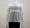 Apportez une touche d'élégance moderne à votre collection de mailles avec ce sweat à rayures géométriques gris argenté et blanc, conçu pour un confort stylé au quotidien. Il comporte une encolure ronde complétée par un cordon sous tunnel à coulisser selon votre souhait, des manches trois quart fashion sur des emmanchures arrondies et de petites fentes de côté à la base. Ce modèle présente un volume droit. Il est confectionné dans un mélange doux et extensible composé de 50 % polyester, 45 % viscose et 5 % élasthanne. Il offre une sensation de douceur et de respirabilité, ainsi qu'une grande liberté de mouvement tout au long de la journée.