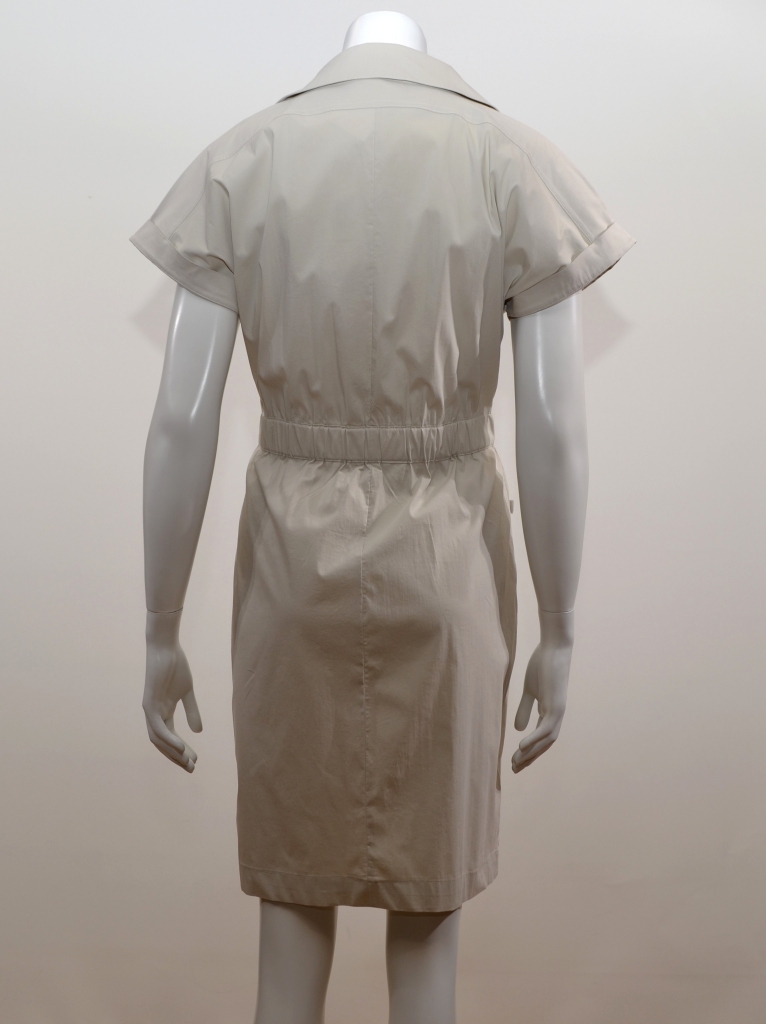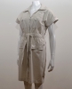 Jolie robe saharienne légère en coton très agréable à porter tout au long de cette nouvelle saison estivale. Cette robe comporte un col chemise,de smanches courtes à revers, une ouverture en V sur le buste, une fermeture centrale à glissière, une poche plaquée buste, une poche crayon, une ceinture élastiquée taille non amovible et deux poches basses trompe l'oeil à rabat. Cette rovbe présente une coupe droite. E