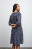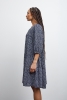 Laissez vous séduire par cette pièce à micro pois intemporelle et passe partout. Cette robe comporte une belle encolure flatteuse en V, des manches aux coudes terminées par une bordure élastiquée, une découpe taille avec fronces et la même chose au niveau des hanches et une fente dos avec bouton et lichette. Cette pièce présente un volume droit. Elle est confectionnée sur un support imprimé fluide et léger.