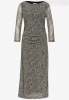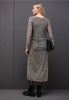 Cette robe en maille présente un motif léopard tendance et un raffinement féminin. L'encolure bâteau, les manches longues et les fronces latérales soulignent la silhouette élégante. La qualité douce assure un port agréable, idéale pour des entrées stylées avec un twist moderne.