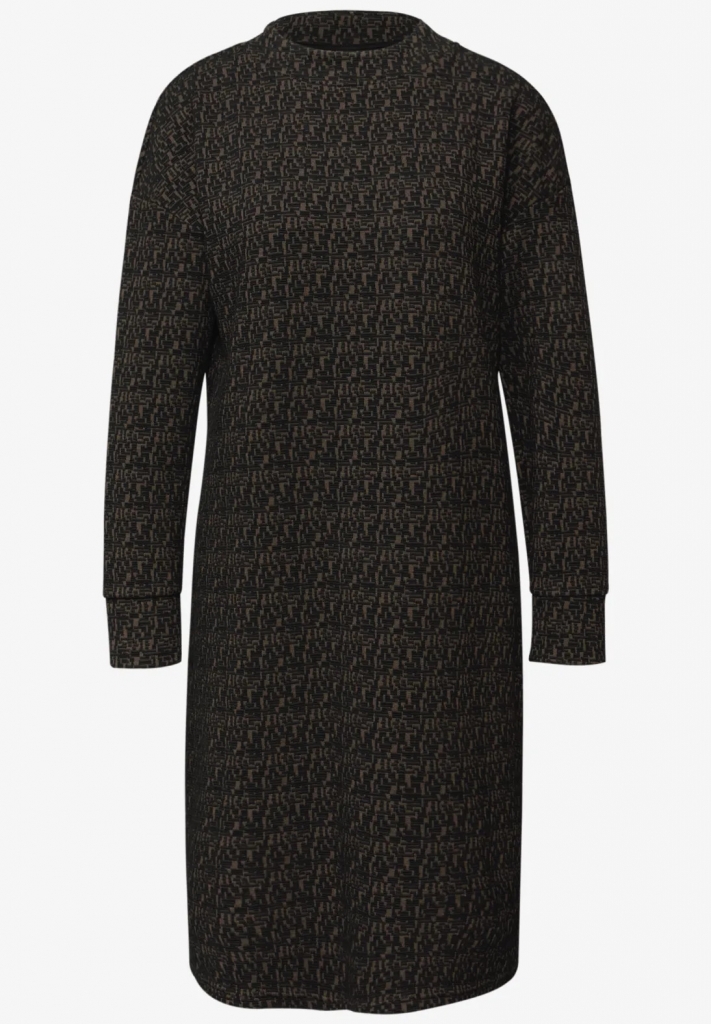 Avec son motif graphique et son col montant, cette robe longueur de genou apporte une touche de mode. Le tissu doux et les fentes latérales à l'ourlet assurent une agréable liberté de mouvement. Les manches longues avec des poignets complètent le look féminin, idéal pour des tenues stylées de tous les jours.