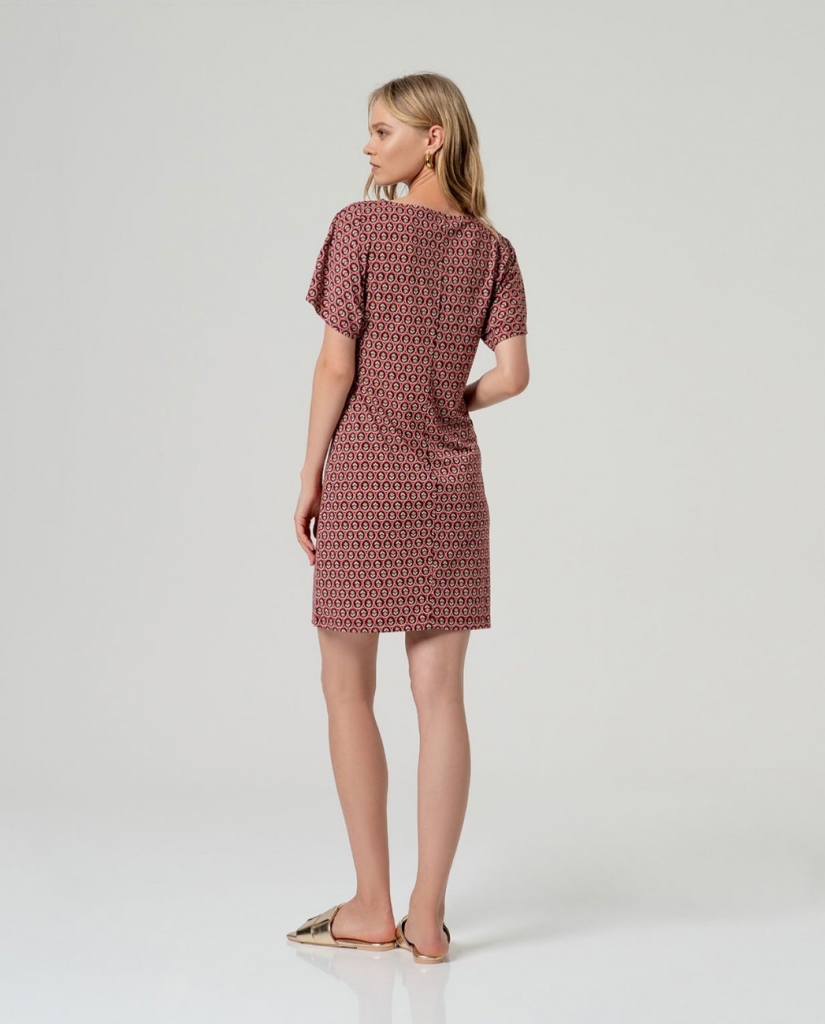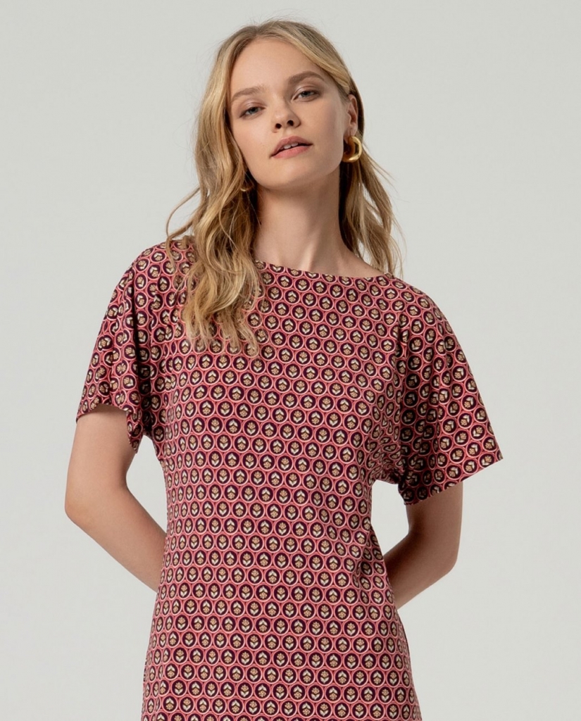 Robe courte proposésur un bel imprimé minimaliste.