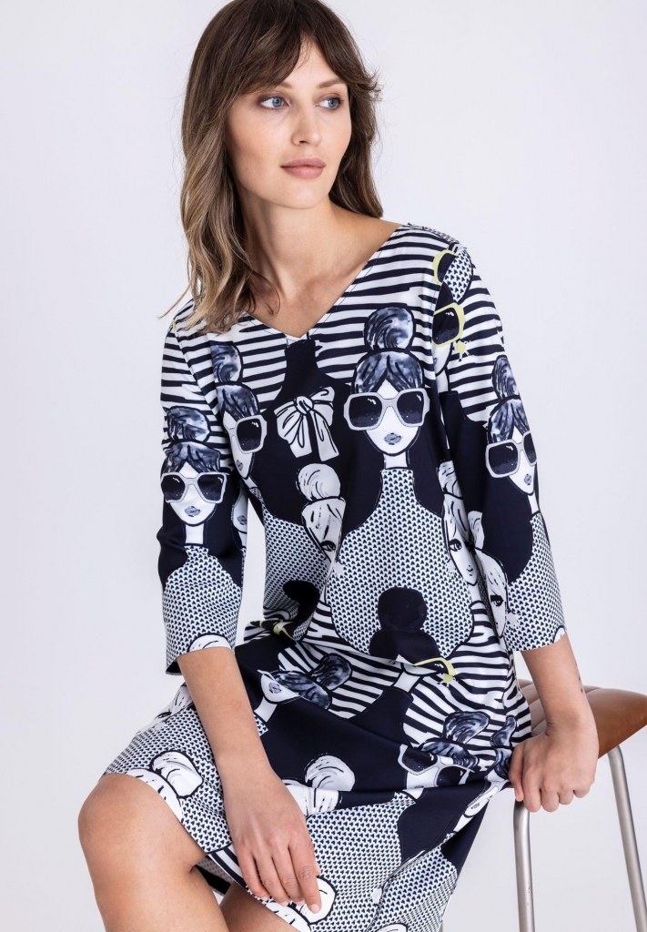 Robe reversible proposée sur un imprimé all-over saisissant. Une pièce forte pour des looks exceptionnels. Cette robe comporte une encolure ronde et des manches trois quart fashion. Elle présente une couoe droite.