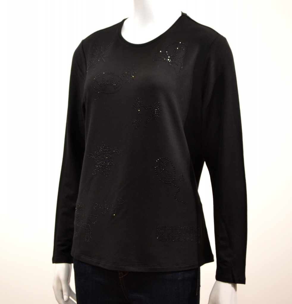 Jolie pièce très facile à porter qui viendra réhausser vos looks festifs. Ce tee-shirt comporte une encolure ronde et des manches longues sur des emmanchures arrondies. Ce modèle présente une forme droite. Il est confectionné sur un support en maille extensible et propose sur sa partie avant des motifs réalisés en sequins brillants.