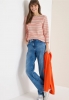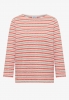 Ce tee-shirt se présente dans un look tricoté moderne avec des rayures multicolores vivantes, idéal pour des styles casual frais. L'encolure bâteau et les manches 3/4 assurent une silhouette féminine. Agréable à porter, il sera parfait pour votre quotidien.